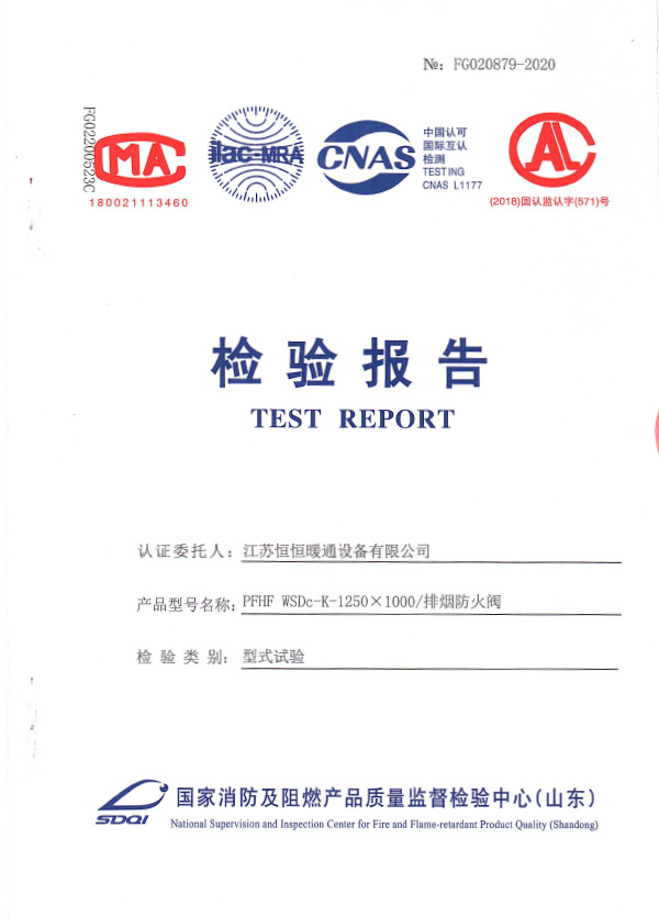防火閥認(rèn)證證書2000X1000