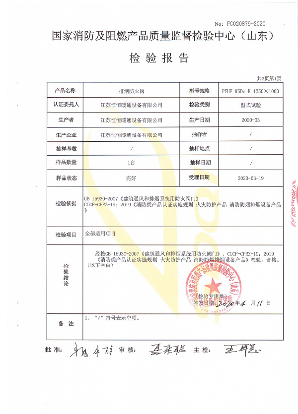 排煙防火閥認(rèn)證證書1250X1000